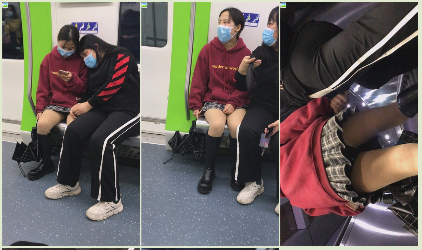 抄底颜值嫩妹【地铁红衣格子裙】人靓腿直,腿开这么大坐车色诱狼友
