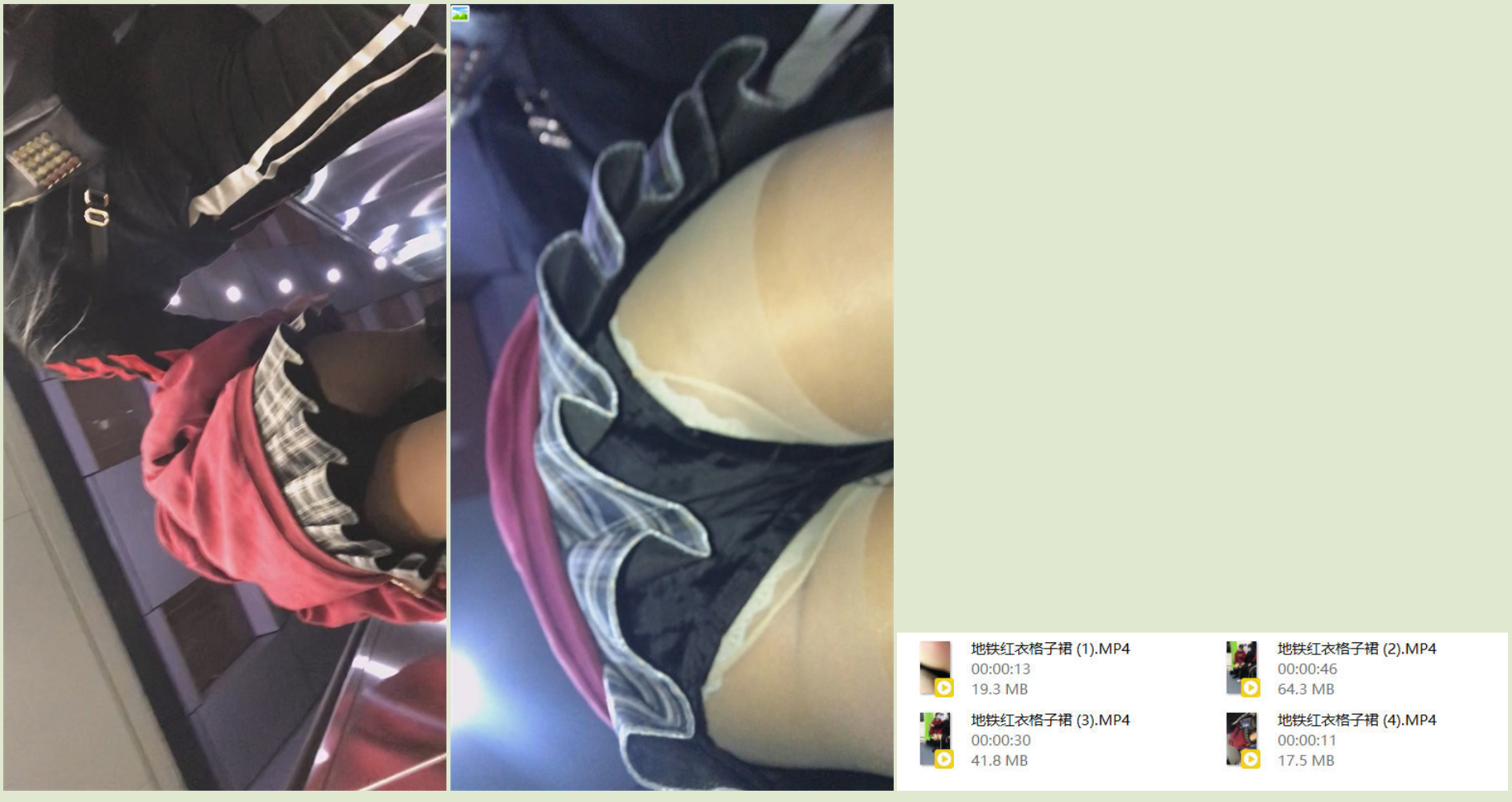 【影片名称】:推荐 抄底颜值嫩妹【地铁红衣格子裙】人靓腿直,腿开这么大坐车色诱狼友,顶着压力开灯拍裙底,原档无水4V